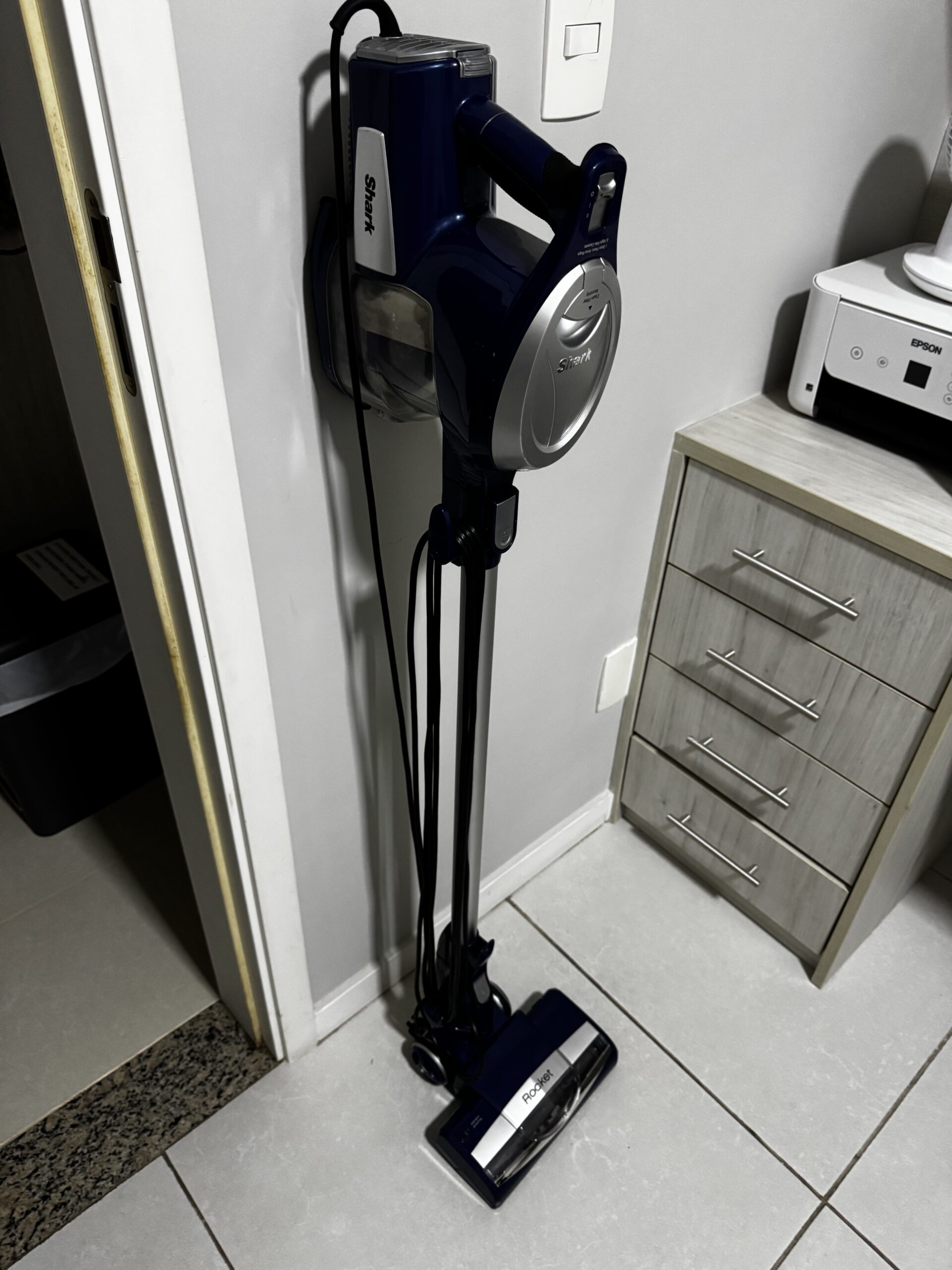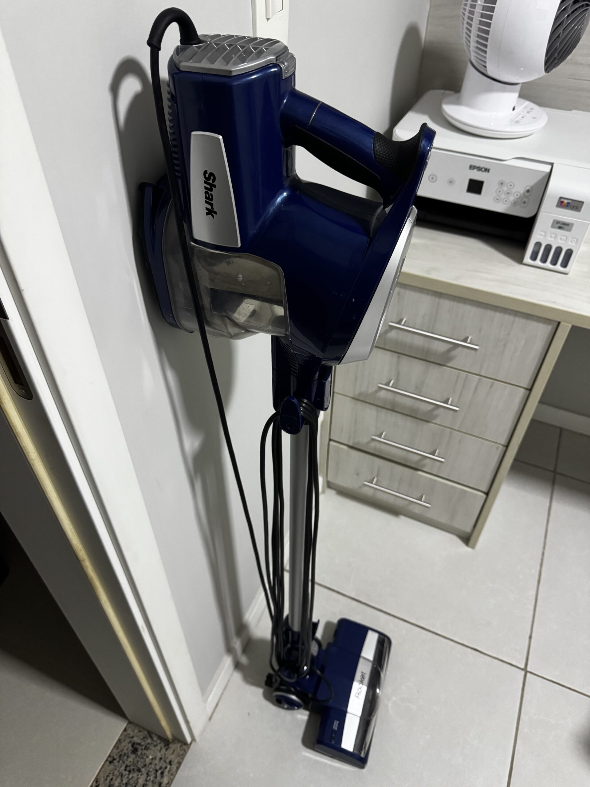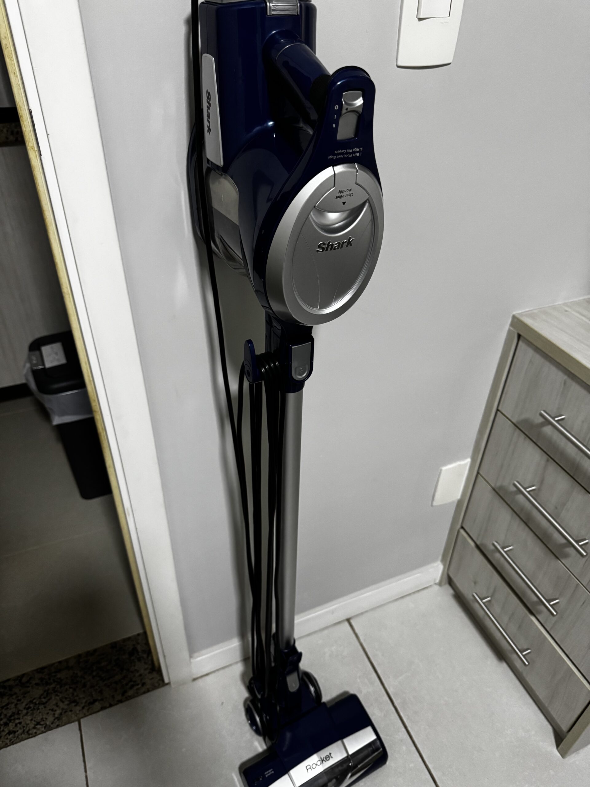 Potente aspirador de pó Shark para limpeza eficiente de pisos e carpetes. Design moderno e fácil de usar, ideal para o dia a dia.